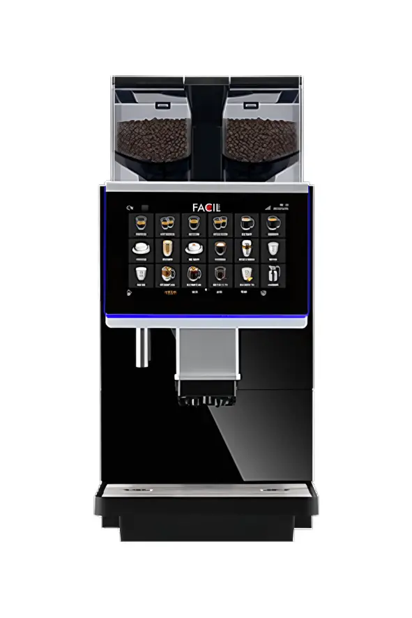 Een uitstekende koffiemachine voor kantoren, sportkantines, zelfbediening locaties en vergaderzalen. Met 2 grote bonenhoppers, zodat je eenvoudig variatie in koffie biedt, een intern melkpomp voor warme en koude melk en een 6-liter watertank.
