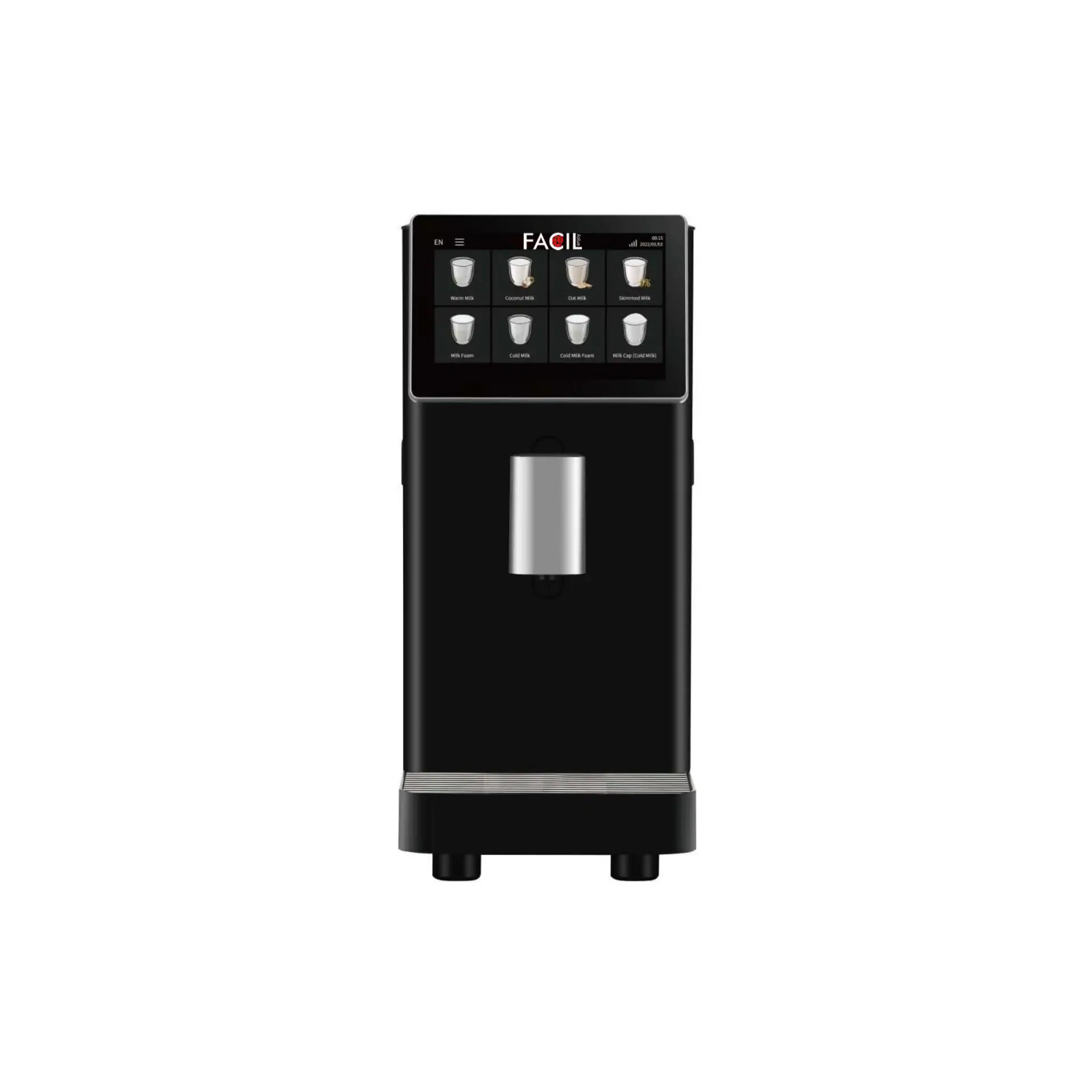 De FEM02 biedt de perfecte oplossing voor het bereiden van verse opgeschuimde melk, zowel warm als koud. Met de mogelijkheid om twee verschillende soorten melk te gebruiken, zoals gewone melk en sojamelk, speelt deze machine in op diverse klantwensen. Dankzij de capaciteit van 280 kopjes cappuccino-melk per dag en 24 instelbare opties, levert de machine ongeëvenaarde flexibiliteit en efficiëntie. Het 7-inch touchscreen maakt de bediening eenvoudig en intuïtief. De snelheid en temperatuur van de melk zijn eenvoudig in te stellen, wat zorgt voor een optimale schuimervaring. Het boiler systeem garandeert een constante en betrouwbare temperatuur, terwijl het automatische schoonmaakprogramma de machine onderhoudt en zorgt voor hygiëne en gebruiksgemak.